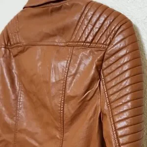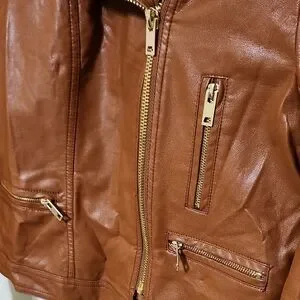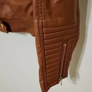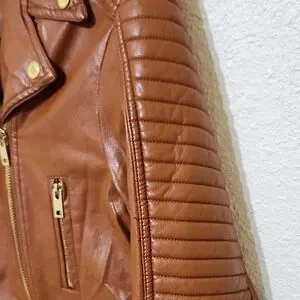 Love Tree Brown and Gold Leather Motorcycle Jacket