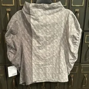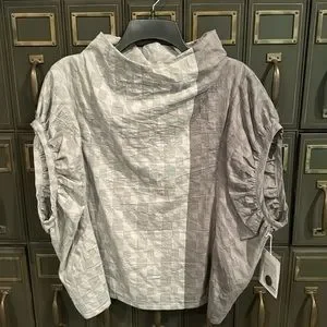 JI U Top. Cotton linen blend. Taupe/beige. Fabulous piece designed and crafted in Japan. Exquisite detailing. Pit to pit 27”. Length 23”. NWT from my Boutique