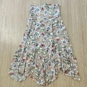 Pinkblush strapless floral handkerchief hem midi nwot