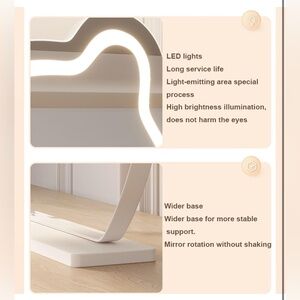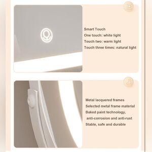 Smart touch: LED desktop makeup mirror, touch, color temperature 3000k-6000k (warm light to white light) freely adjustable, long press the touch-sensitive button to adjust the light brightness.