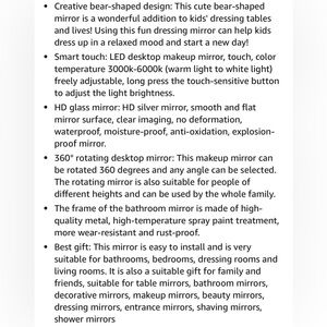 Creative bear-shaped design: This cute bear-shaped mirror is a wonderful addition to kids' dressing tables and lives! Using this fun dressing mirror can help kids dress up in a relaxed mood and start a new day!