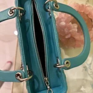 Beautiful teal authentic lady dior! I can do CHEAPER price on Dpp mygirlycloset101. Almost a Tiffany blue color. Beautiful! Only callouts is some water spots on the hardware and does not come with strap, will come with certificate of authenticity!! #ladydior #mediumladydior #blueladydior #diorbag
