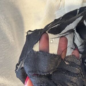 Small holes on the bottom of the dress since its super long. Not obvious when worn. Tailor fixed some but not all.