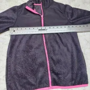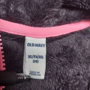 Old Navy 14 XL Full Zip Fleece Jacket Black & Pink High Neck Faux Fur Girls