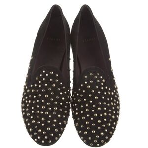 Stuart Weitzman Women’s Black Suede Studded Loafers With Zipper Heel Size