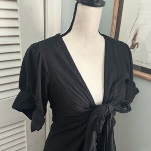 FREE PEOPLE Womens Dress Black Vintage Summer Midi Tie Front Whimsigoth Bohemian Festival