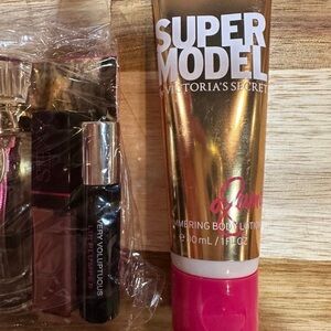 Discover the allure of Victoria's Secret with this exclusive makeup and skincare set. Featuring a captivating blend of pink, gold, and brown hues, this collection is perfect for enhancing your natural beauty. Elevate your routine with these luxurious products.