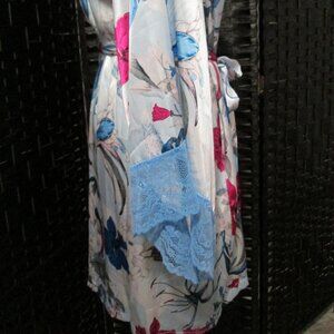 Linea Donatella Ayanna Satin Lace-Trim Robe Blue Floral NWT Sz L/XL