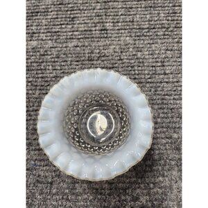 VTG Fenton White French Opalescent Glass Hobnail Bowl Round Ruffle Edge 2.5"x4"