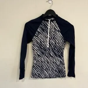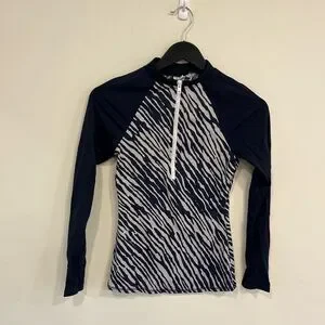 Boden Rash Guard Top Long Sleeve Shirt UPF Sun Protection Zip Up Blue White US 4