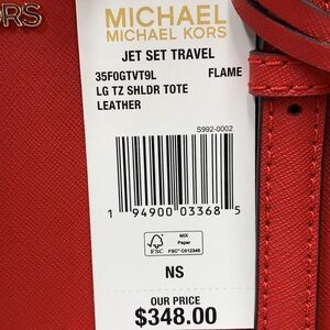 MICHAEL KORS JET SET TRAVEL LARGE TOP ZIP SHOULDER TOTE FLAME