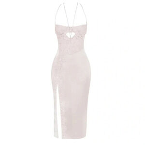 House of CB Lace Cutout Body Con Dress in Crystal Pale Pink Size S NWT