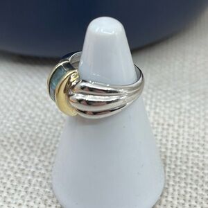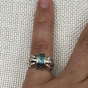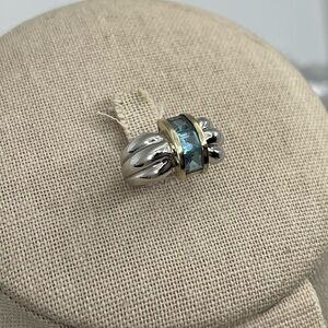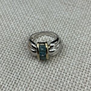 Vintage Sterling Silver with Gold Accents & Blue Gemstone Ring Size 4.75