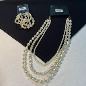 NWT Bundle of 2 Ophelia Roe Pearl Necklace & Elastic Pearl Bracelets Gold