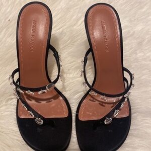 New Amina Muaddi Tina Satin Crystal Charm sandals size 37.5EU