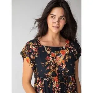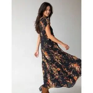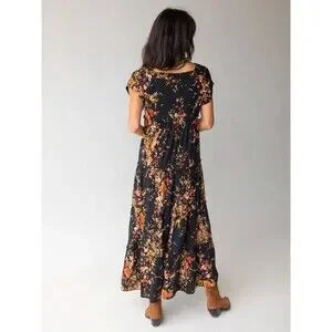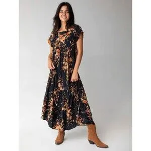 NWT NATURAL LIFE Berkley Maxi Dress Black Floral Boho Chic Hippie Indie Size S