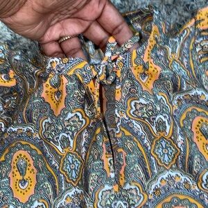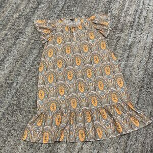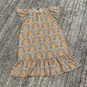 Ann Taylor factory Orange Patterned Dress with glitter sleeves sz M