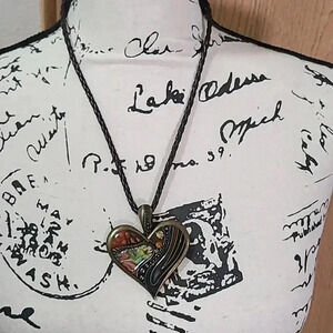This elegant necklace set features multicolor heart pendants, perfect for adding a touch of charm to any outfit. The unique design and vibrant colors make it a standout piece in your jewelry collection. Great condition