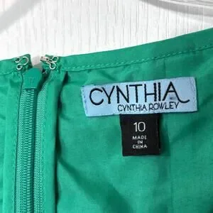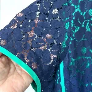 Cynthia Rowley Wms 10 Short Sleeve Blue Green Lace Floral Overlay Sheath Dress