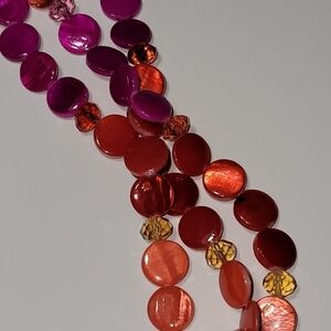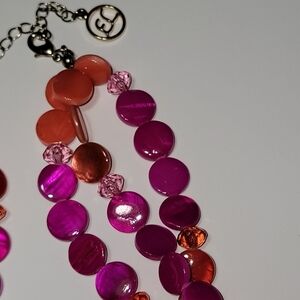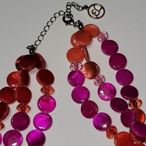 Erica Lyons pink orange acrylic round disc 3 strand bead necklace