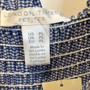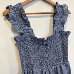 London Times Ruffled Sleeveless Smocked Midi Dress Gingham Blue