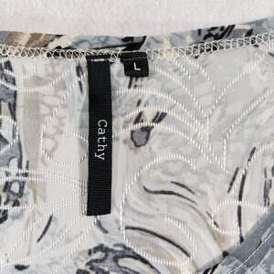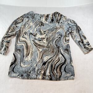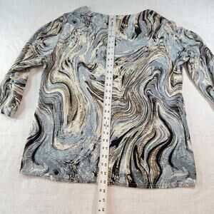 Top Shirt Cathy Woman L Jewel Neck 3/4 Sleeve Blue Brown Black Textured Fabric