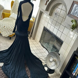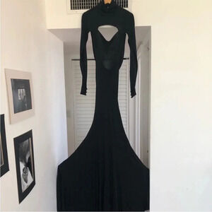 black gown w/ train long sleeve dramatic statement dress like Beyoncé wore sz 8