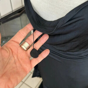 There is a beautiful detail in the front that lets you wear a dangled weight outside or inward to allow more or less cleavage. Also very clever