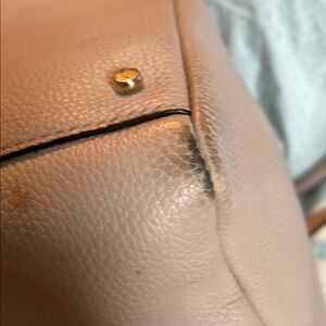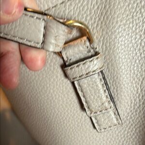 This is a person a friend wanted me to sell for her! The bag is a BEAUTIFUL Bone Grey color! I don’t understand why people don’t take care of there bags. With me saying that, it does have some spots and on the handle issue. Take a look at pics. I know you could probably send it to Kate Spade for a repair and cleaning. If those issues weren’t there, this bag would be way more. The leather is phenomenal!