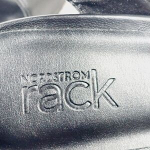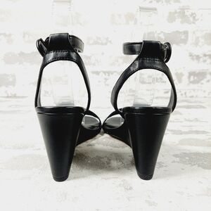 New Nordstrom Rack Carrie Black Faux Leather Wedge Heel Ankle Strap Sandals T298