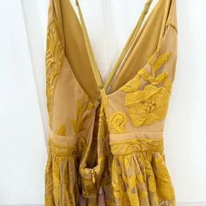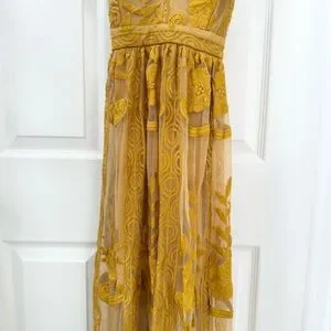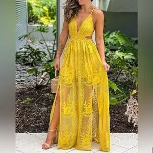 Step out in style with this elegant yellow floral maxi dress. Perfect for any occasion, this dress features a stunning design that will turn heads. Beautiful cross back straps.