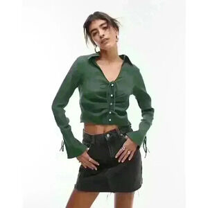 Topshop Button Down Cropped Blouse in bottle green Size 12
