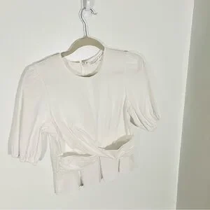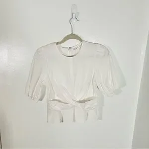 NEW Veronica Beard Arvilla Top White Criss Cross Preppy Coastal Modest Peplum