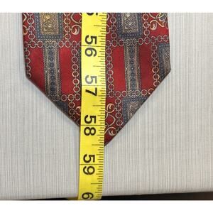 Bill Blass Mens Tie Maroon Gold Geometric Traditional 100% Silk NeckTie