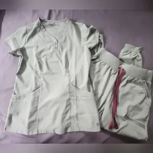 Easy Stretch Scrub Set | Olive Leaf With Burgundy Accent