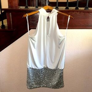 Fredericks of Hollywood Y2K White & Silver Sequin Shimmer Sleeveless Dress Large.