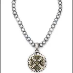 This elegant necklace features a striking combination of silver and gold tones, adorned with Roman numeral detailing. Perfect for adding a touch of sophistication to any outfit.