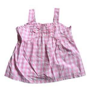 Charming pink gingham sleeveless top with bow detail. Perfect for a casual day out.