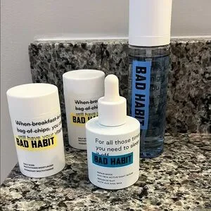 Complete skincare set from Bad Habit. Includes moisturizer, serum, and mist. Mostly full! Bought way too much and need to clean out.
