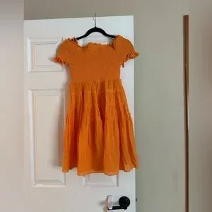 Ruched babydoll dress. Off shoulder styling. Never worn size xs