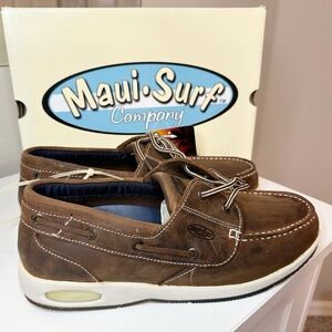 Maui Surf Company footwear has you "covered" with comfort, quality, fashion, performance and value with every product they make. No matter where you are going or what you are doing; boat, kayak, barbeque, beach combing, out on the town, or in a hammock these shoes will be perfect. They have a non slip rubber bottom and lace up. Excellent Condition.