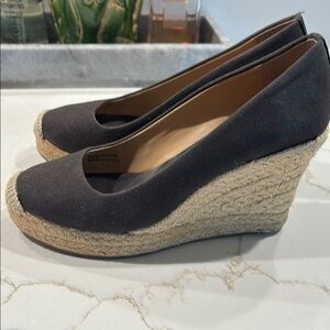 Step out in style with these chic black espadrille wedge shoes. Perfect for any occasion, they offer both comfort and elegance. Black size 5, GUC