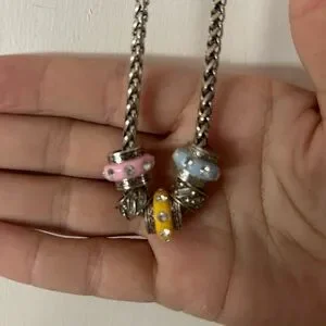 Authentic Brighton spacer beads. featuring pink, blue, and yellow beads with rhinestone accents. Also two silver spacers with rhinestones. These are all retired. Beautiful condition, no stones missing.
