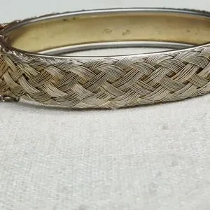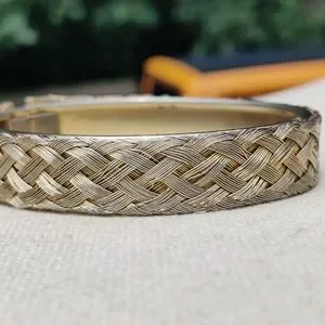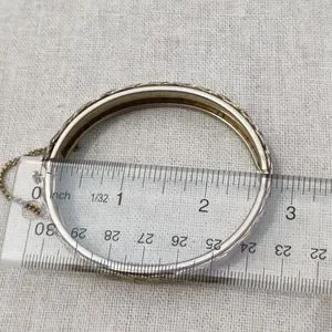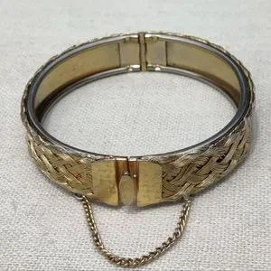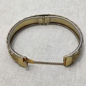 Gorgeous 6.5-7.5" gold tone cross cross hinged bracelet with safety chain