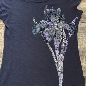 Elevate your style with this Express navy blue top featuring a stunning sequin floral design. Perfect for any occasion, this top combines elegance and comfort.