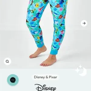 Colorful pajama pants featuring Finding Dory characters. Perfect for a cozy night in.