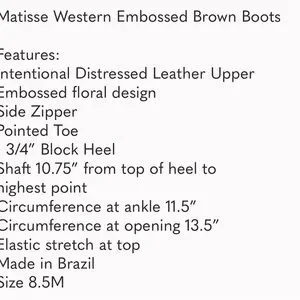 Matisse Western Zip Up Brown Leather Cowboy Boots