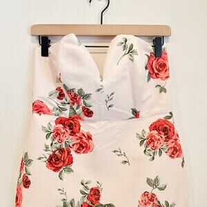 Tags: floral, strapless, wedding, wedding guest, bride, bridesmaid, formal, dance, prom, fitted, midi, boho, bohemian, beach, beachy