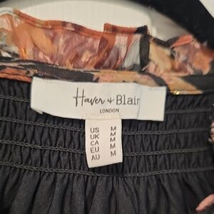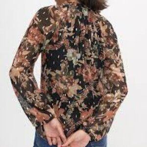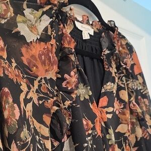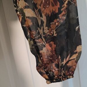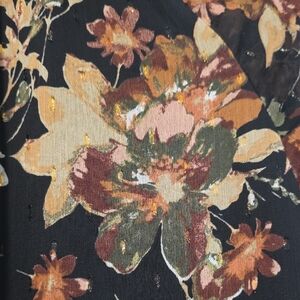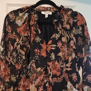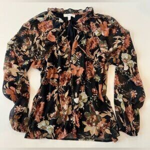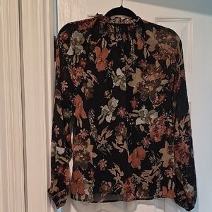 Elegant floral blouse in black with a stylish design. Perfect for any occasion. Like New barely worn. Extra button on care tag