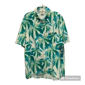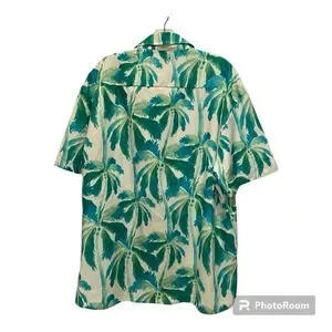 Hardaddy Short Sleeved Button Down Shirt Men Size M Palm Tree Print Front Pocket